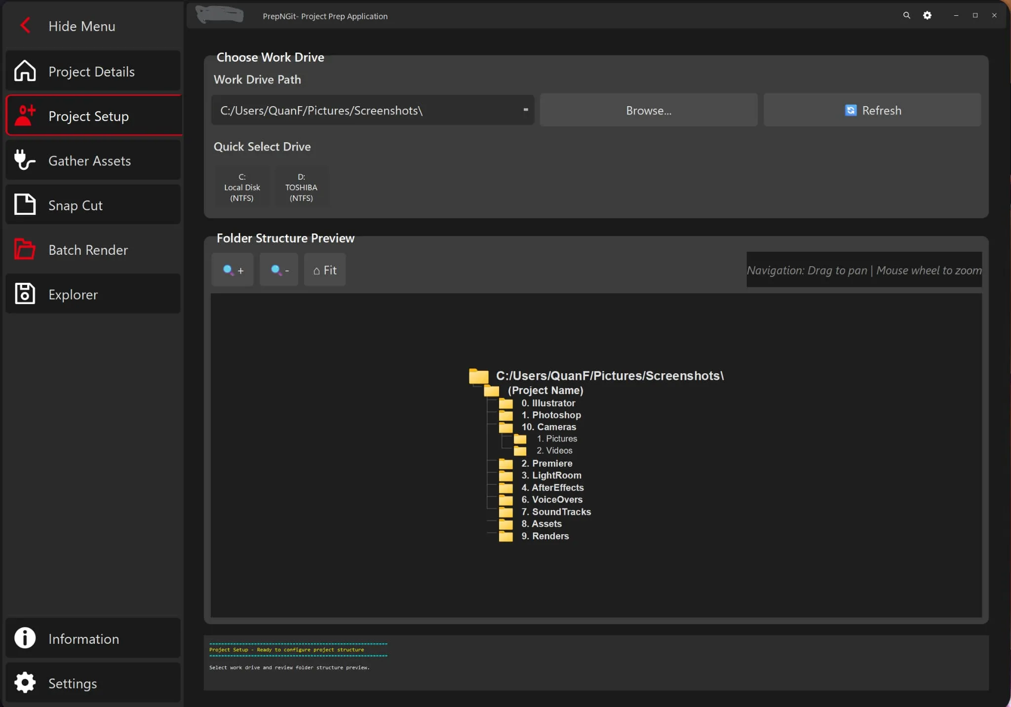 The fastest way to start new projects. PrePNGit scaffolds folder structures, gathers assets, and handles Git setup in seconds. Available for Mac, Windows, and Linux.